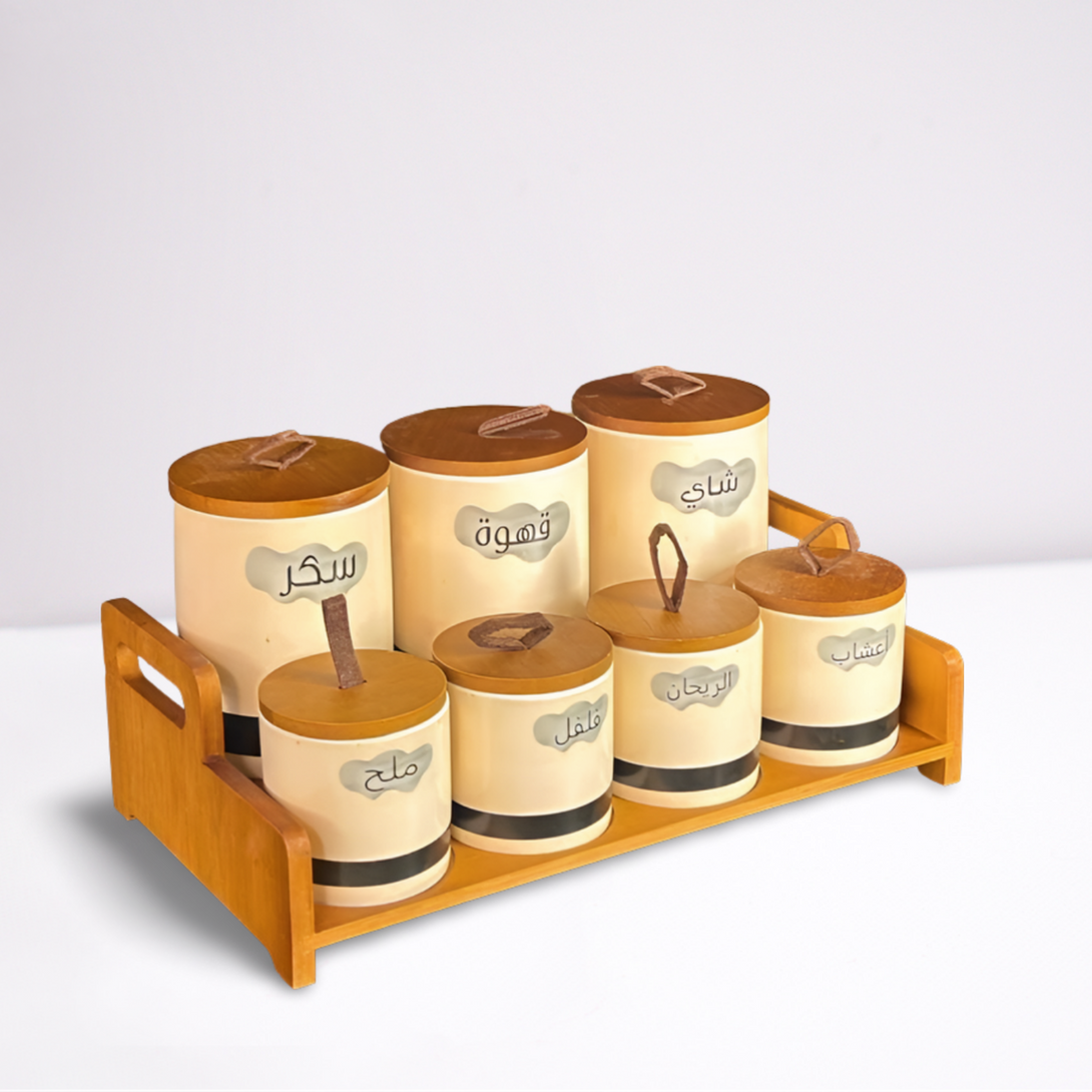 عملي ومنظم: يأتي الطقم مع حامل خشبي أنيق يسهل حمله وتخزينه على منضدة المطبخ أو في خزانة، مما يحافظ على جميع التوابل في متناول يدك.